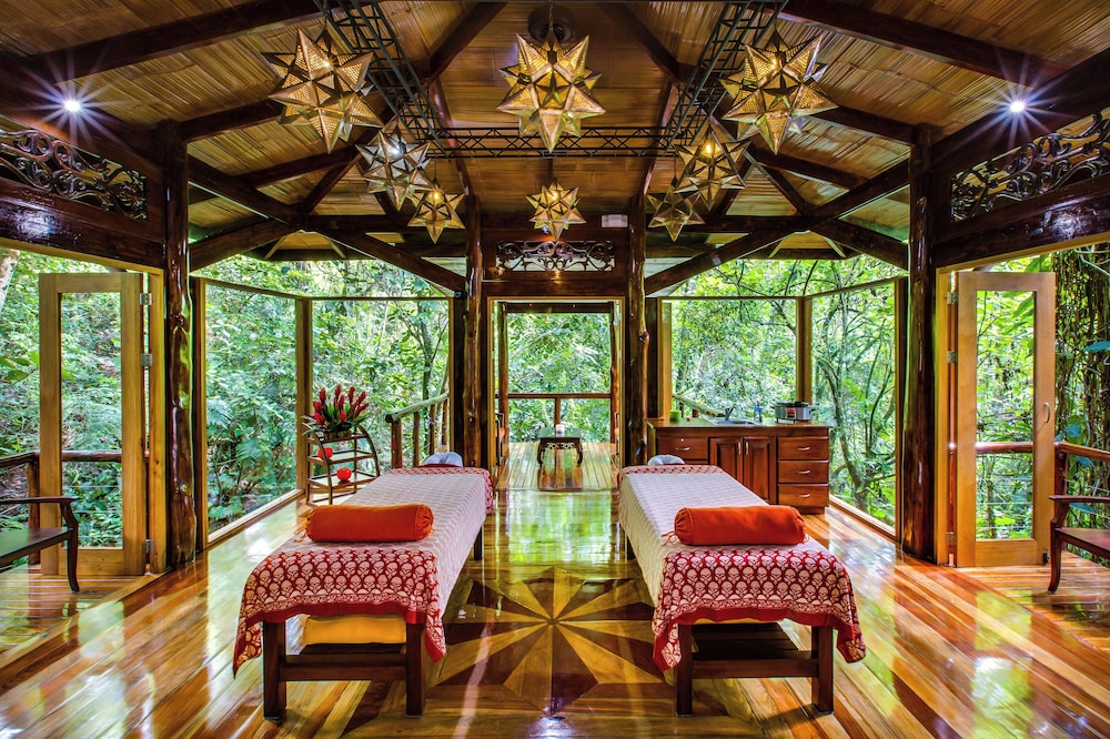 Para un relax sin igual, nada como una visita al spa, que ofrece masajes, tratamientos corporales y tratamientos faciales. La diversión está asegurada en este alojamiento, que ofrece 2 piscinas al aire libre, aguas termales y una sauna. Otros servicios de este hotel incluyen conexión a Internet wifi gratis, servicios de conserjería y una tienda de recuerdos.Degusta algo de cocina internacional en Amor Loco, uno de los 4 restaurantes de este hotel. El alojamiento también te ofrece servicio de habitaciones las 24 horas y una cafetería. Pon la guinda en el pastel a un día fantástico con una bebida en el bar o lounge o en el bar junto a la piscina. Se ofrece un desayuno a la carta gratuito todos los días de 06:00 a 10:30.Tendrás conexión a Internet por cable gratis, periódicos gratuitos en el vestíbulo y tintorería a tu disposición. Pagando un pequeño suplemento podrás aprovechar prestaciones como servicio de transporte al aeropuerto (ida y vuelta) disponible 24 horas y aparcamiento con asistencia gratuito.Reserva una de las 34 habitaciones climatizadas, todas equipadas con piscina de inmersión privada y televisión de pantalla plana. Las habitaciones disponen de balcón. Para los momentos de ocio, tendrás un televisor con canales por cable y conexión a Internet por cable y wifi gratis. Entre las comodidades, se incluyen caja fuerte, escritorio y teléfono con y llamadas internacionales gratuitas.Las distancias se expresan en números redondos. Natura Eco Park: 0,1 km Parque de Aventuras Go: 1,1 km Aguas termales Los Lagos: 1,9 km Paradise Hot Springs: 2,6 km Parque de aguas termales Kalambu: 2,7 km Termales Los Laureles: 2,8 km Aguas termales de Baldi: 2,8 km Ecotermales Fortuna: 3,2 km Ecoglide Arenal Park: 4,1 km Aguas termales de Titokú: 4,5 km Aguas termales Tabacón: 5,5 km Parque Nacional Volcán Arenal: 5,6 km Parque de La Fortuna: 7,5 km Puentes Colgantes del Arenal: 8,1 km Tour del Chocolate de Costa Rica: 8,4 km Aeropuertos más cercanos: La Fortuna (FON - Arenal): 9,5 km Aeropuerto Internacional Juan Santamaría (SJO), San José: 123,8 km Aeropuerto recomendado para Nayara Springs - Adults only: Aeropuerto Internacional Juan Santamaría (SJO), San José. Nayara Springs - Adults only de La Fortuna está en la montaña, a solo 15 minutos en coche de Parque Nacional Volcán Arenal y Cascada La Fortuna. Además, este hotel de lujo se encuentra a 13,9 km de Puentes Colgantes del Arenal y a 15,2 km de Costa Rica Sky Adventures.Cerca de Aguas termales Los Lagos